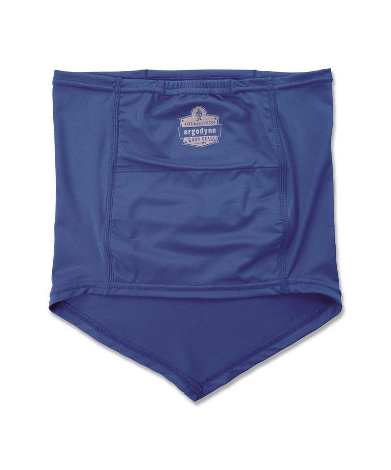 The Chill-Its 6482 Cooling Neck Gaiter with Pocket protects workers from sun, dust and debris while also providing cool relief on hot days. When wet, the evaporative cooling technology will instantly activate for hours of cooling. When dry, the material will absorb sweat and wick moisture. For advanced cooling along the neck, this neck gaiter features a reinforced back pocket designed to hold the Chill-Its 6283 Rechargeable Phase Change Ice Pack (included). It is rated to UPF 50+ for protection against the sun's harmful UV rays, and also features a reflective accent for enhanced visibility. With a bandana cut, this gaiter is longer in the front than back. When pulled up for wear as a face covering, the adjustable nose clip along the top makes for a comfortable and secure fit while also reducing eyewear fogging. A gathered elastic seam along the back reduces the gap between the neck and gaiter for a snug, comfortable fit.
