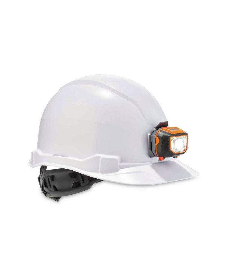 The Class E hard hat with LED light is heavy-duty, yet lightweight and comfortable head protection built to protect the top of the head from falling objects or bumping into stationary objects. A padded, moisture-wicking and odor-resistant sweatband and top pad lines the sides, forehead and top interior and is removable for easy replacement. This cap-style hard hat can be worn backwards to improve upward visibility or forward to keep sun and rain away from the eyes. This safety helmet fits hat sizes 6.5 to 8 (21 in to 25 in). Customize the size with the easy-to-adjust 4-point premium ratcheting suspension. Simply turn the one-handed adjustment knob to tighten or loosen the fit without having to take the hard hat off. Built with weight distribution in mind, this hard hat's snug fit balances