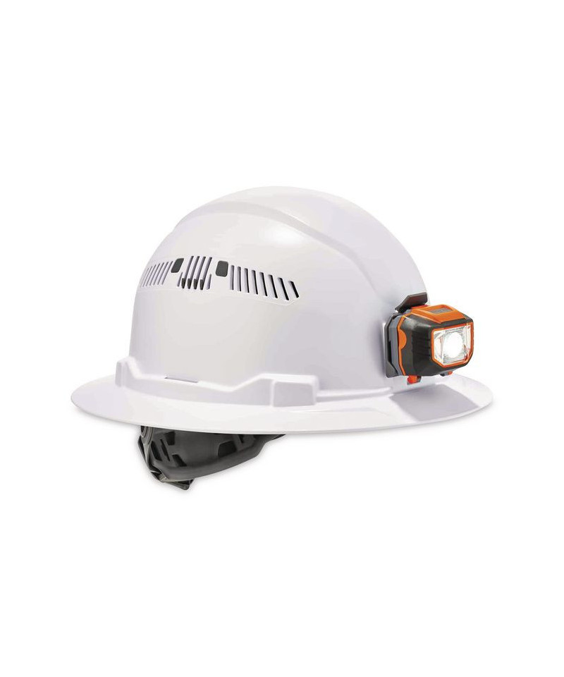 The Skullerz 8973 Class C Full Brim Hard Hat and LED Light is heavy-duty, yet lightweight and comfortable head protection built to protect the top of the head from falling objects or bumping into stationary objects. A padded, moisture-wicking and odor-resistant sweatband and top pad lines the sides, forehead and top interior and is removable for easy replacement. This full-brim style helps keeps rain away from the eyes and provides extra protection against falling or flying debris. Also offers all-around protection from the sun, humidity and heat. The open frame design with the adjustable venting offers a cooler hard hat in the heat and a dry hard hat in the rain. This safety helmet fits hat sizes 6.5 to 8 (21 in to 25 in). Customize the size with the easy-to-adjust 4-point premium ratcheting suspension. Simply turn the one-handed adjustment knob to tighten or loosen the fit without having to take the hard hat off.