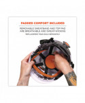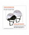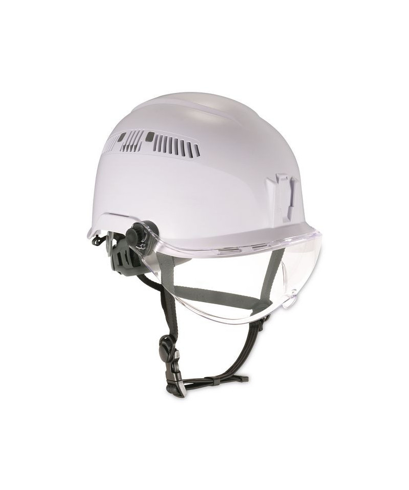 Class C (Conductive) helmet features a unique, vented shell and a flexible, open-frame, six-point suspension system for heavy-duty, yet lightweight and comfortable, all-over-head protection. Adjustable exterior venting keeps your head cool (when open) or warm and dry (when closed). A low-profile brim helps improve visibility, and an integrated chin strap secures the helmet in place. One-size-fits-most: accommodates hat sizes 6.5 through 8. Included easy-mount visor features a UV-protective, scratch-resistant z87 lens and Fog-Off technology.