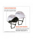 The Skullerz 8975V Class C (Conductive) Safety Helmet with 8991 Visor Kit features a unique, vented shell and a flexible, open-frame, six-point suspension system to provide heavy-duty, yet lightweight and comfortable, all-over-head protection from top, side, front and back impacts. For increased eye and face protection, 8975V helmets also include an easy-mount, removable visor that features a z87 UV-protective lens that's treated with Fog-Off and Tena-Coat technologies. Permanent Fog-Off, anti-fog technology ensures crystal-clear see-through, no matter the job, which is particularly useful for those working with face masks and respirators or those trekking though environments where extreme temperature changes are common. Reliable Tena-Coat technology provides durable scratch-resistance against kicked stones, windblown dust and a variety of other abrasive nuisances. The helmet's adjustable exterior venting allows the wearer to remain cool in hot, dry weather by opening the vents or to remain warm and dry in cold, wet weather by closing the vents, and the compact shell's smaller, low-profile brim helps improve overall field of vision, particularly when looking up. A one-size-fits-most format accommodates those who wear hat sizes 6.5 through 8, and a premium, easy-adjust ratcheting system allows the wearer to tighten or loosen the fit without having to take the helmet off. The rachet system's one-handed adjustment knob also pivots to improve overall ergonomics while providing extra clearance for bandana or ponytail knots. A padded, moisture-wicking, odor-resistant sweatband and top pad line the sides, forehead and top of the interior, and both the headband and top pad are removable for machine-washing and/or easy replacement. An integrated chin strap allows the wearer to secure the helmet in place to ensure protection during sudden movements, falls and impacts. Built with even weight-distribution and comfort in mind, all Skullerz 8975 helmets should deliver a snug, balanced fit to please nearly anyone. Patent-pending headlamp slots on the front and rear accommodate Skullerz Hard Hat Headlamps (lamps sold separately). From mountain-climbers to spelunkers, from iron-workers to pipefitters... whether you're on top of the world or deep within it, 8975 series safety helmets are designed to help you keep your head.