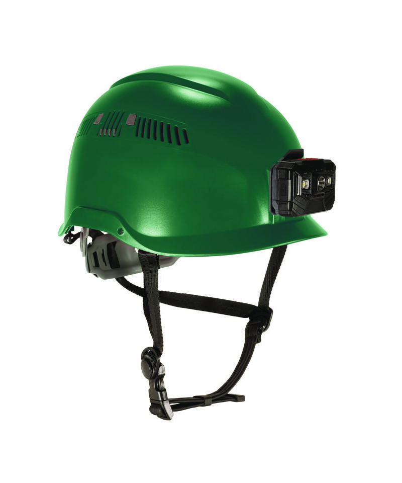 Skullerz 8977LED Class C Safety Helmet with LED Light and Adjustable Venting, 6-Point Ratchet, One Size Fits Most, Green