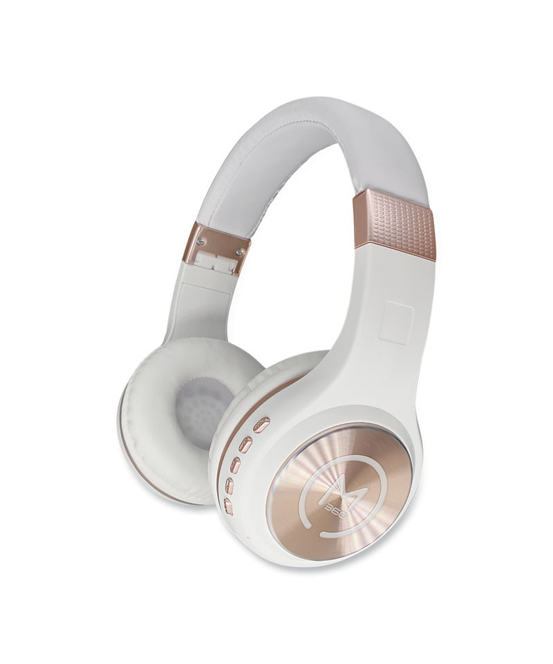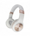 SERENITY Stereo Wireless Headphones with Microphone, 3 ft Cord, White/Rose Gold