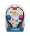 Small-size headphones are specially designed for kids. Special Volume Level Protection feature helps limit the volume, so it doesn't exceed unsafe listening levels-regardless of how high the volume is turned up. Includes interchangeable pink, blue and silver caps. Lightweight for a comfortable fit.