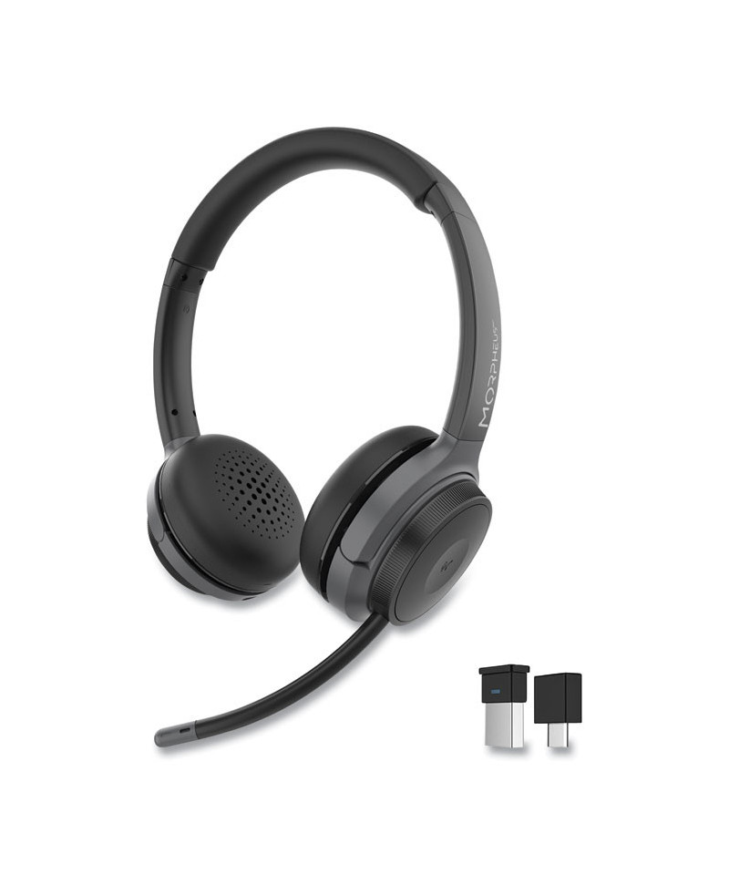 Morpheus 360 Advantage Wireless Stereo Headset with Detachable Boom Microphone is designed on the Bluetooth 5.3 platform. Wireless headset is multipoint, allowing you to connect to multiple devices and enables you to switch between devices seamlessly. The advantage lightweight design will encourage you to work smarter and play longer. Wireless PC/Mac pairing with call handling and volume control buttons built in. The noise cancelling boom microphone has 120° rotation and can be positioned on your right or left for all day productivity. Specialized IC provides the noise cancellation in our boom microphone. The IC technology identifies the source of the noise and electronically filter it out of the conversation. The protein leather ear cushion is designed to deliver comfort, with memory foam insulation and soft protein earpads, to simulate the natural feel of leather on your skin. Universal communication standard is built with compliance to the UC Standard that works with all standard compatible communication software including Zoom, Skype, MS Teams and more.