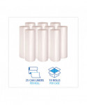 High-density polyethylene provides superior performance at an affordable price. A can liner you can rely on that's ideal for paper and non-sharp objects. The sturdy, star-seal bottom is designed without gussets, which eliminates gaps along the seal where leaks can occur. Conforms easily to the shape of the container and distributes weight of the refuse evenly around the bag. Maximizes carrying capacity. Easy to dispense. Coreless, perforated rolls for dispensing on the go.