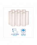 High-density polyethylene provides superior performance at an affordable price. A can liner you can rely on that's ideal for paper and non-sharp objects. The sturdy, star-seal bottom is designed without gussets, which eliminates gaps along the seal where leaks can occur. Conforms easily to the shape of the container and distributes weight of the refuse evenly around the bag. Maximizes carrying capacity. Easy to dispense. Coreless, perforated rolls for dispensing on the go.