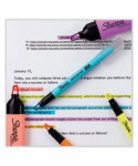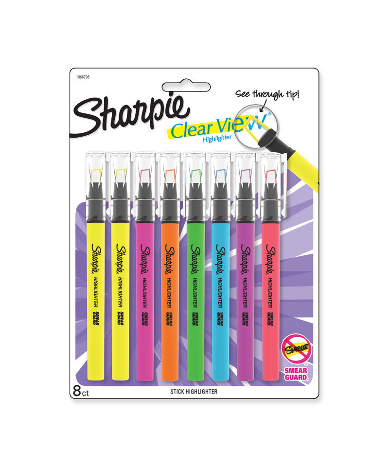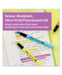 Ergonomic, pen-style highlighter features a unique, see-through tip that eliminates blind spots. SMEAR GUARD™ ink technology resists smearing of many pen and marker inks (let ink dry before highlighting). Innovative, blade-style tip delivers precise highlighting with the ability to select different line widths.