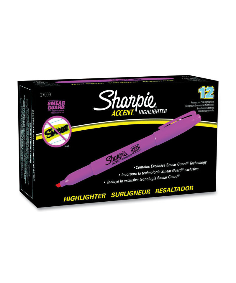 Features SMEAR GUARD ink specially formulated to not smear when highlighting over many pen and marker inks including inkjet printouts, written notes, newspapers and more. Versatile chisel tip is great for highlighting or underlining. Quick drying, odorless ink won't fade type or bleed through most paper.