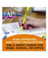 Convenient pen-shaped design and super-bright fluorescent ink. Chisel tip is ideal for both broad highlighting and fine underlining. Won't dry out if the cap is left off for eight hours.