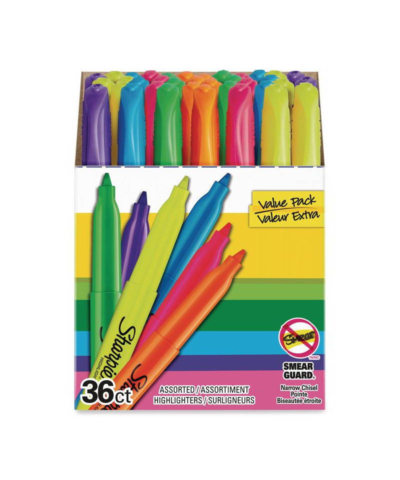 Features SMEAR GUARD ink specially formulated to not smear when highlighting over many pen and marker inks including inkjet printouts, written notes, newspapers and more. Versatile chisel tip is great for highlighting or underlining. Quick drying, odorless ink won't fade type or bleed through most paper.