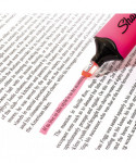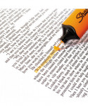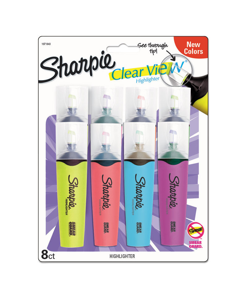 Features a unique, see-through tip that eliminates blind spots. Smear Guard™ ink technology resists smearing of many pen and marker inks (let ink dry before highlighting). Innovative, blade-style tip delivers precise highlighting with the ability to select different line widths.