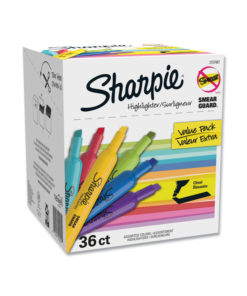 Quick-drying, odorless SMEAR GUARD™ ink resists smearing. (Based on consumer surveys. Let ink dry before highlighting.) Easy-glide micro chisel tip for smooth and accurate highlighting on both wide and narrow lines of text. Dependable, long-lasting highlighter is ideal for inkjet printouts, written notes, textbooks, newspapers and more. Color won't fade type or bleed through most paper.