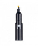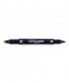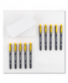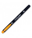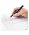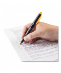 Dual-tip highlighter with durable broad chisel tip and extra-fine bullet tip in one pen. Resin-coated tips and polymer-coated core prevent tip breakage or staining rulers, eliminating unwanted ink transfer. Protective plastic sleeve on chisel tip maintains shape even when using with metal rulers or stencils. Vibrant, fluorescent colors are perfect for color-coding and calling attention to important text. Fine tip works great for underlining and writing margin notes. Fast-drying odorless ink doesn't smear and won't bleed through most papers. Color-coded cap features durable clip.