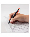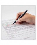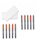 Dual-tip highlighter with durable broad chisel tip and extra-fine bullet tip in one pen. Resin-coated tips and polymer-coated core prevent tip breakage or staining rulers, eliminating unwanted ink transfer. Protective plastic sleeve on chisel tip maintains shape even when using with metal rulers or stencils. Vibrant, fluorescent colors are perfect for color-coding and calling attention to important text. Fine tip works great for underlining and writing margin notes. Fast-drying odorless ink doesn't smear and won't bleed through most papers. Color-coded cap features durable clip.
