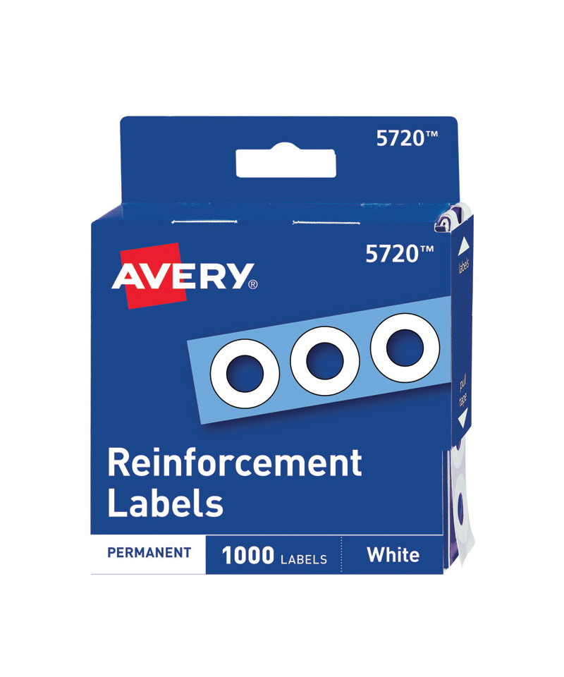 Dispenser Pack Hole Reinforcements, 0.25" Dia, White, 1,000/Pack, (5720)