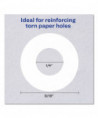 Self-adhesive, super thin poly-vinyl rings repair and strengthen punched holes in paper. Standard hole size labels will not rip or tear. Hole reinforcements come in white or clear and are packaged in an easy-to-use dispenser.