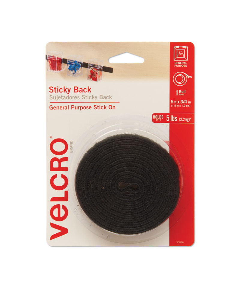 Sticky-Back Fasteners with Dispenser, Removable Adhesive, 0.75" x 5 ft, Black