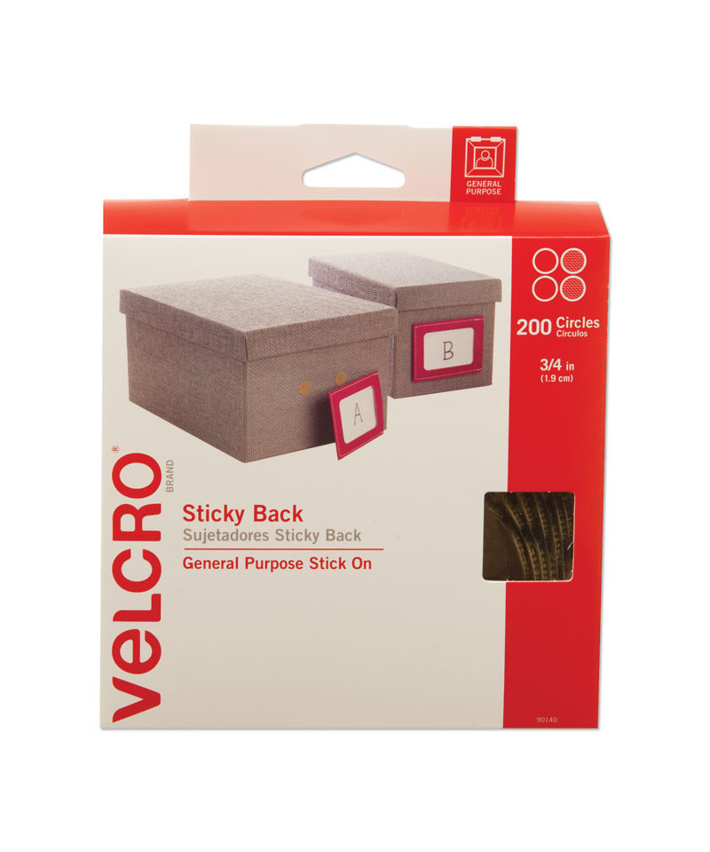 Sticky-Back Fasteners with Dispenser Box, Removable Adhesive, 0.75" dia, Beige, 200/Roll