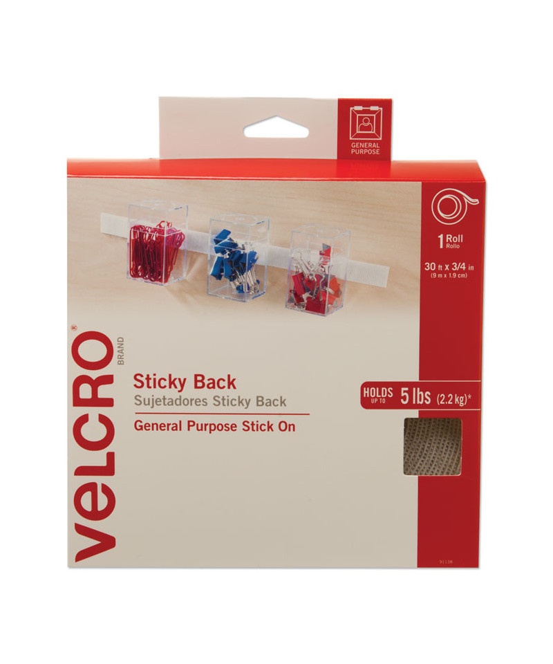 Sticky-Back Fasteners, Removable Adhesive, 0.75" x 30 ft, White