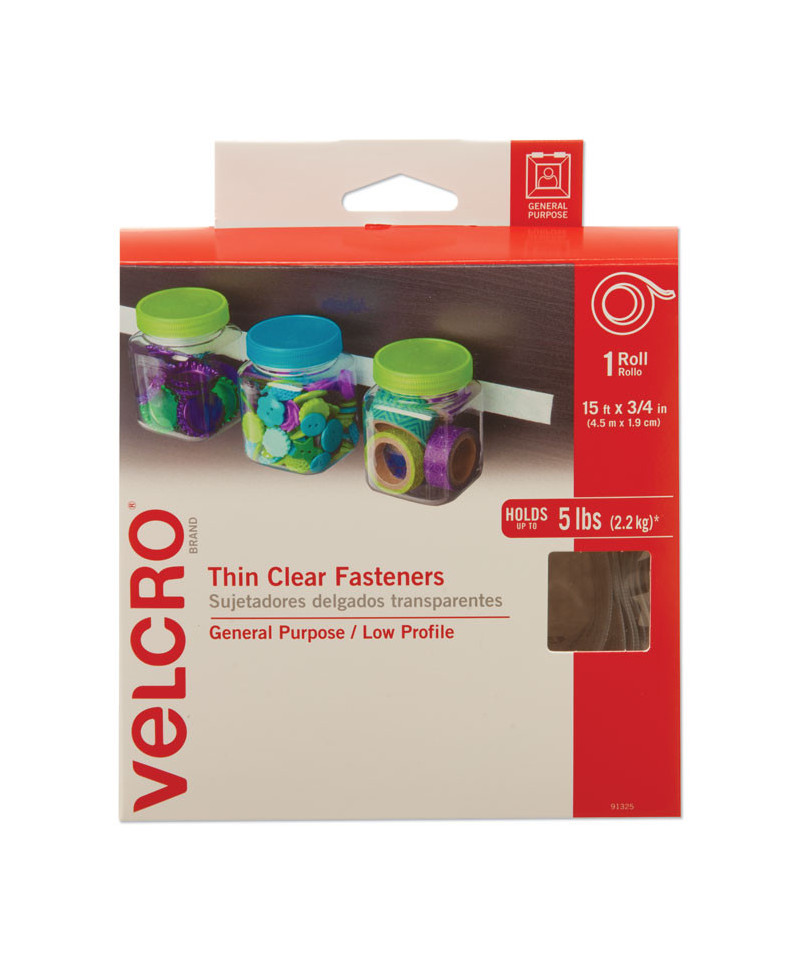 Sticky-Back Fasteners, Removable Adhesive, 0.75" x 15 ft, Clear