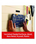 Stow supplies safely with super duty fasteners that securely hold up to 10 lb. They're great for mounting heavy decor, tools, signage and more. Fastener locks three times stronger than traditional hook and loop fasteners.