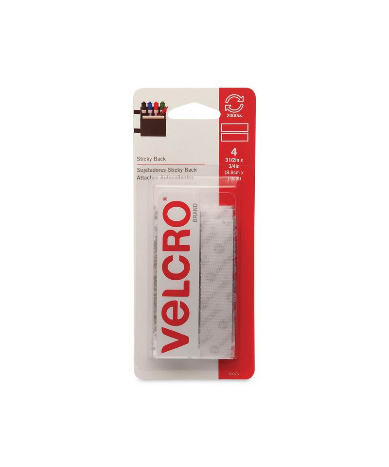 Sticky-Back Fasteners, Four 0.75" x 3.5" Strips, White