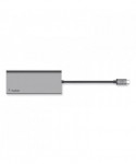 Connect multiple devices to a USB-C laptop through a single cable. The USB-C Multimedia Hub offers USB-A, USB-C, HDMI™ (supporting 4K 30Hz monitors), ethernet and SD card ports, to connect your laptop easily and safely to all kinds of peripherals and devices, including projectors, monitors, SD cards, thumb drives, internet and more.