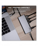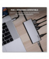 Connect multiple devices to a USB-C laptop through a single cable. This hub offers USB-A, USB-C, HDMI™ (supporting 4K 30Hz monitors), ethernet and SD card ports, to connect your laptop easily and safely to all kinds of peripherals and devices, including projectors, monitors, SD cards, thumb drives, internet and more.