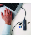 With this hub's power delivery support and pass-through charging capabilities, you will never worry about running out of battery during critical tasks. Our USB-C Pro Multiport Hub is your go-to solution for seamless and efficient multitasking. Enhanced connectivity is at your fingertips: converting a single USB-C port into eight versatile ports, including a USB 3.2 port for swift data transfer and an HDMI port that provides crystal clear image and displays. If you need a card reader, this hub includes both card reader slots for SD and microSD memory cards.