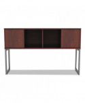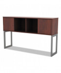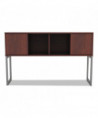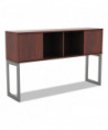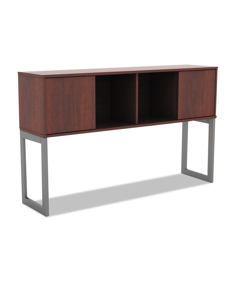Increase productivity and deskspace with this overhead storage hutch. Sliding doors keep items easily within reach. Included doors can be omitted for even easier access. Contemporary open-plan office design. Commercial-grade woodgrain laminate is scatch-, dent-, and spill-resistant. Includes mounting tape and hardware.