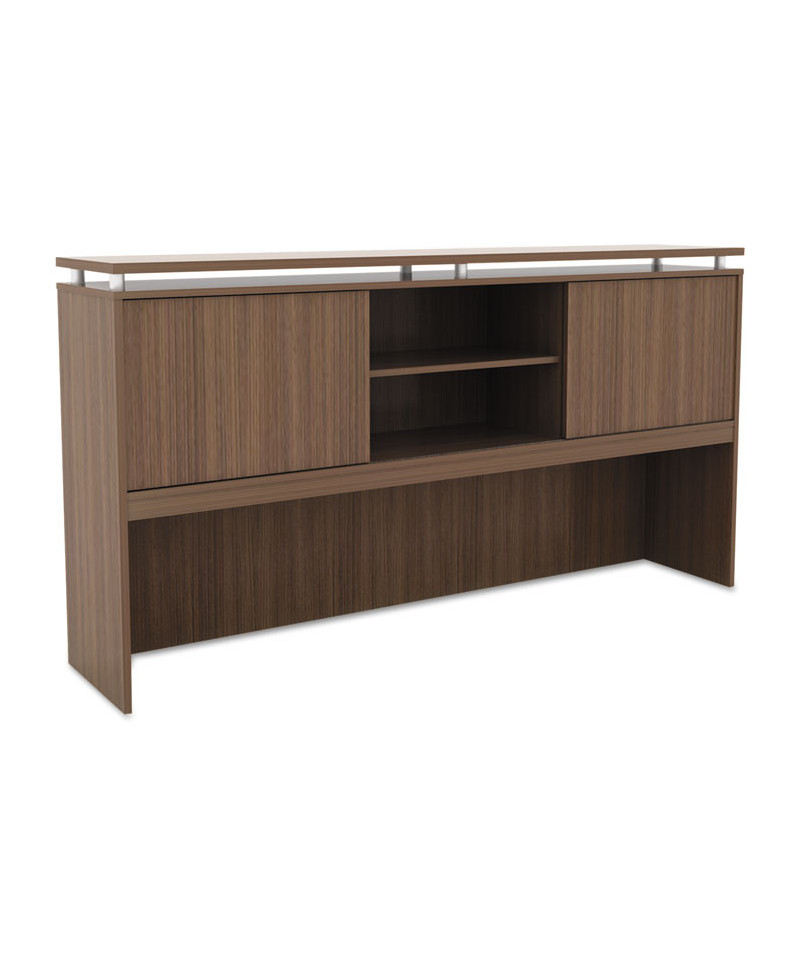 Alera Sedina Series Hutch with Sliding Doors, 72w x 15d x 42.5h, Modern Walnut