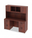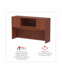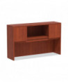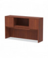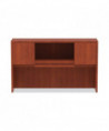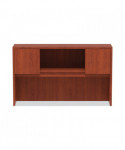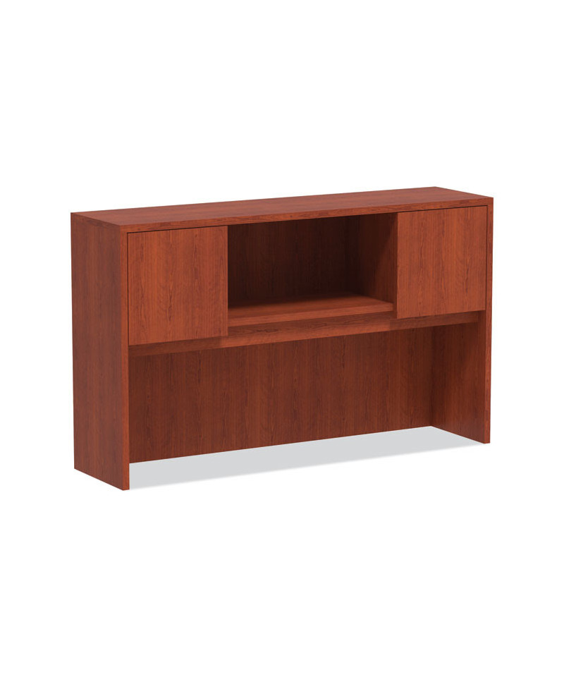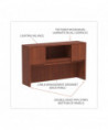 Get organized, increase productivity, and utilize more desktop space with this attractive, sleek, and modern hutch. Handy compartmentalized overhead storage for helping you sort through the clutter and keep important items out of sight, yet within reach. Built-in lighting valance and grommets to facilitate task lighting installation if desired. Durable woodgrain laminate is water, scratch, and stain resistant. Fully finished back for flexible configuration.