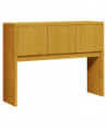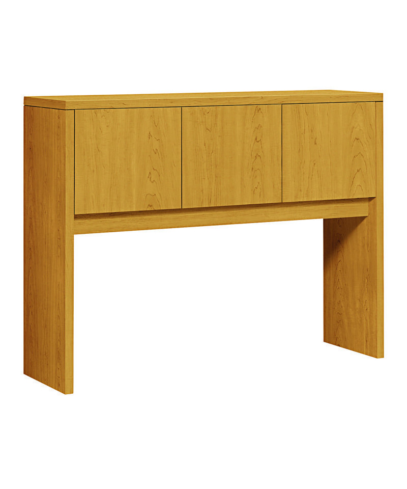 Keep your clutter behind closed doors! Durable woodgrain laminate is scratch-, stain- and spill-resistant for years of trouble-free performance. Clean, straight edges deliver a streamlined look. Enclosed storage behind self-closing, adjustable hinged doors. Valance and wire access facilitate optional task lighting.