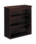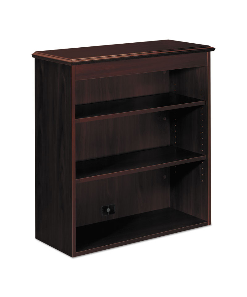 18th century elegance, 21st century engineering. Traditional styling combined with thoroughly modern, easy-care laminate. Three shelves hold books, binders and supplies; two shelves adjust in 1 1/4" increments for storage flexibility. Convenient cord management grommet in back panel.