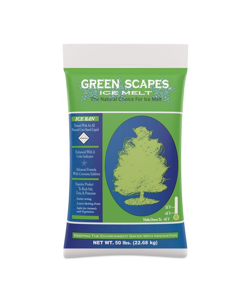 Blended with Magnesium Chloride and infused with Ice Ban, Green Scapes™ is an innovative product that is safer for sidewalks and vegetation. This option also features a green color indicator that makes for easier and fewer applications. While still boasting a melting point that rivals other blends, Green Scapes™ has a lower chloride content.