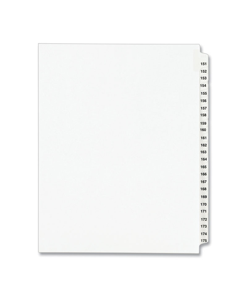 Preprinted Legal Exhibit Side Tab Index Dividers, Avery Style, 25-Tab, 151 to 175, 11 x 8.5, White, 1 Set, (1336)