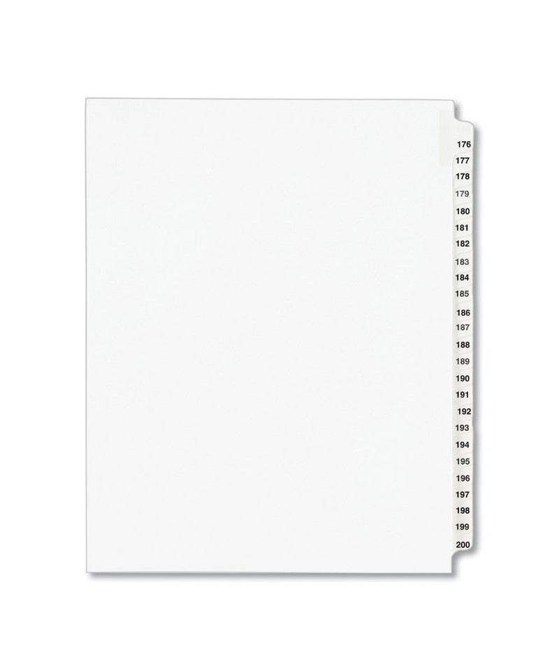 Preprinted Legal Exhibit Side Tab Index Dividers, Avery Style, 25-Tab, 176 to 200, 11 x 8.5, White, 1 Set, (1337)