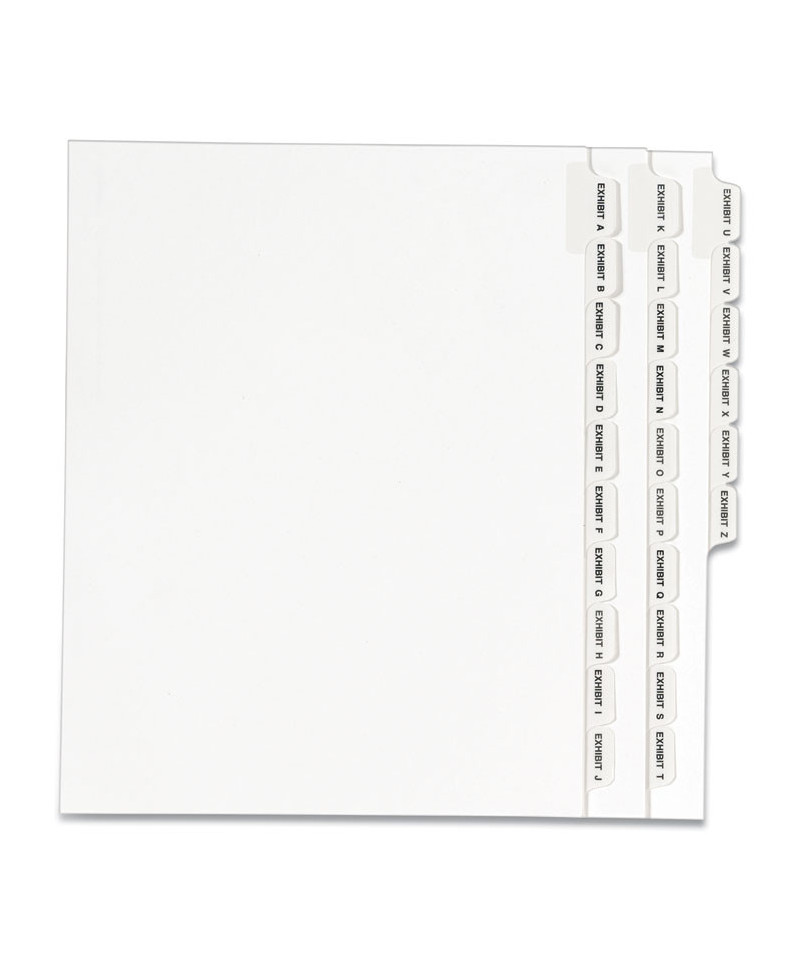 Preprinted Legal Exhibit Side Tab Index Dividers, Avery Style, 26-Tab, Exhibit A to Exhibit Z, 11 x 8.5, White, 1 Set, (1370)