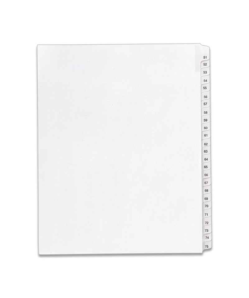 Preprinted Legal Exhibit Side Tab Index Dividers, Allstate Style, 25-Tab, 51 to 75, 11 x 8.5, White, 1 Set, (1703)