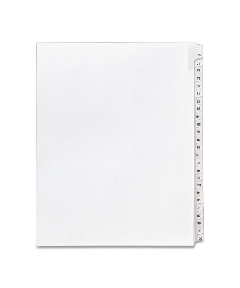 Preprinted Legal Exhibit Side Tab Index Dividers, Allstate Style, 25-Tab, 76 to 100, 11 x 8.5, White, 1 Set, (1704)