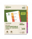 Organized documentation makes a business run like a well-oiled machine. These Ready Index Table of Contents Dividers help you stay organized so you can locate documents quickly and efficiently. They feature preprinted multicolor tabs that can be displayed in either landscape or portrait format. Using free templates from Avery Design & Print you can customize the included table of contents page and print in minutes. Organization and efficiency-makes life better for your business. For laser and inkjet printers.