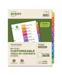 Organized documentation makes a business run like a well-oiled machine. These Ready Index Table of Contents Dividers help you stay organized so you can locate documents quickly and efficiently. They feature preprinted multicolor tabs that can be displayed in either landscape or portrait format. Using free templates from Avery Design & Print you can customize the included table of contents page and print in minutes. Organization and efficiency-makes life better for your business. For laser and inkjet printers.