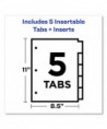 Tabs provide 50% more writing space than standard tabs. Tab design allows easy insertion and removal, but keeps insert securely in place. Reinforced binding edge. Easily customize inserts using free templates from Avery Design & Print. Handwrite or print inserts on laser and inkjet printers.