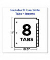 Tabs provide 50% more writing space than standard tabs. Tab design allows easy insertion and removal, but keeps insert securely in place. Reinforced binding edge. Easily customize inserts using free templates from Avery Design & Print. Handwrite or print inserts on laser and inkjet printers.