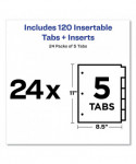 Includes 24 sets of 5-tab dividers
