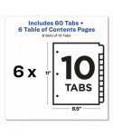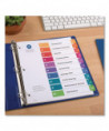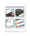 Organized documentation makes a business run like a well-oiled machine. These Ready Index Table of Contents Dividers help you stay organized so you can locate documents quickly and efficiently. They feature preprinted multicolor tabs that can be displayed in either landscape or portrait format. Using free templates from Avery Design & Print you can customize the included table of contents page and print in minutes. Organization and efficiency-makes life better for your business. For laser and inkjet printers.