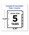 Tabs provide 50% more writing space than standard tabs. Tab design allows easy insertion and removal, but keeps insert securely in place. Reinforced binding edge. Easily customize inserts using free templates from Avery Design & Print. Handwrite or print inserts on laser and inkjet printers.