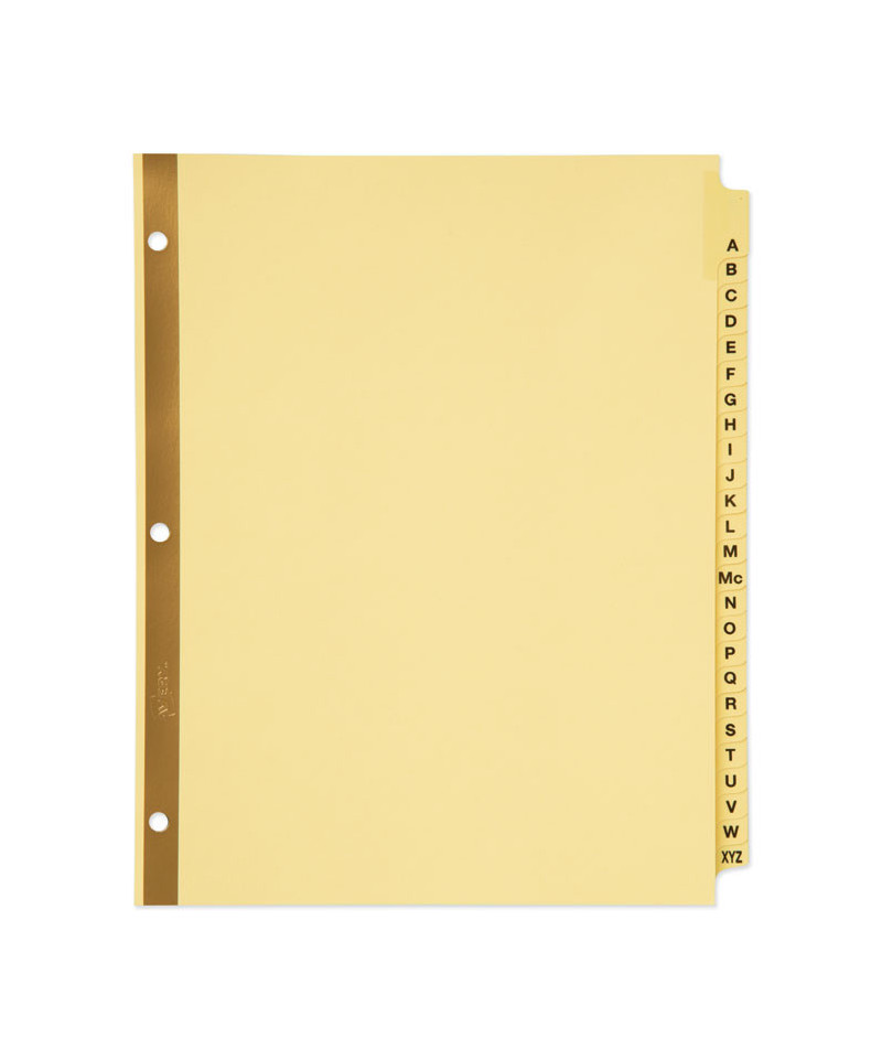 More efficient organization for alphabetical chronological, or numerical sorting. The process becomes simple with handy preprinted tabs to help you get started organizing your paperwork instantly. Gold binding edge is reinforced so you can turn pages secure in the knowledge that your dividers won't tear easily from the binder rings. Easy-to-read black lettering helps you find the right section at a glance.