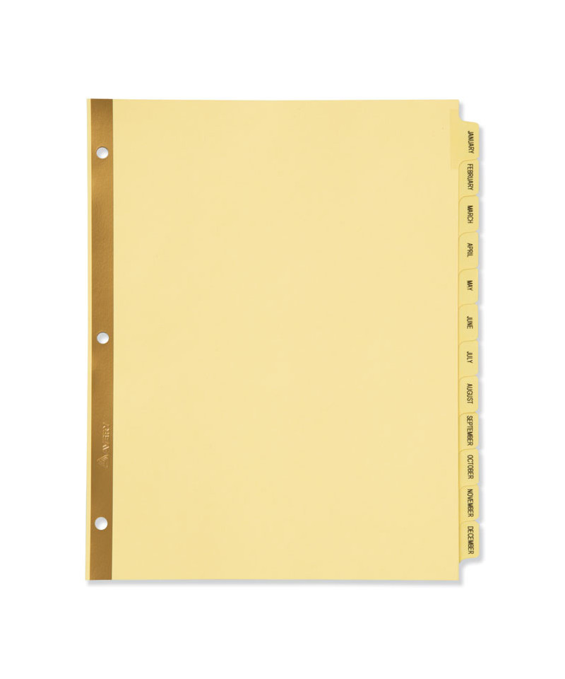 More efficient organization for alphabetical chronological, or numerical sorting. The process becomes simple with handy preprinted tabs to help you get started organizing your paperwork instantly. Gold binding edge is reinforced so you can turn pages secure in the knowledge that your dividers won't tear easily from the binder rings. Easy-to-read black lettering helps you find the right section at a glance.